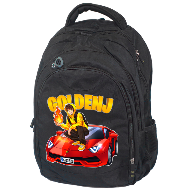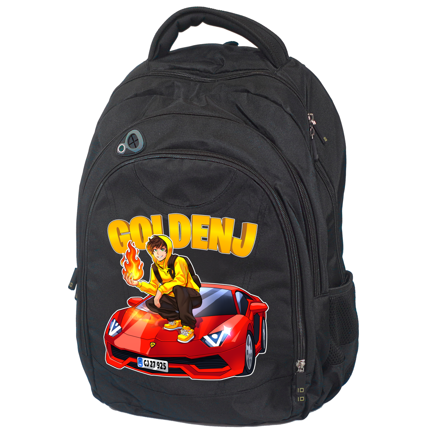 GoldenJ Lambo Skoletasken er den ultimative rygsæk til alle fans, der elsker Fortnite, biler og YouTube-action.