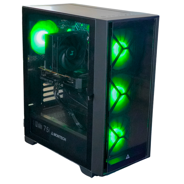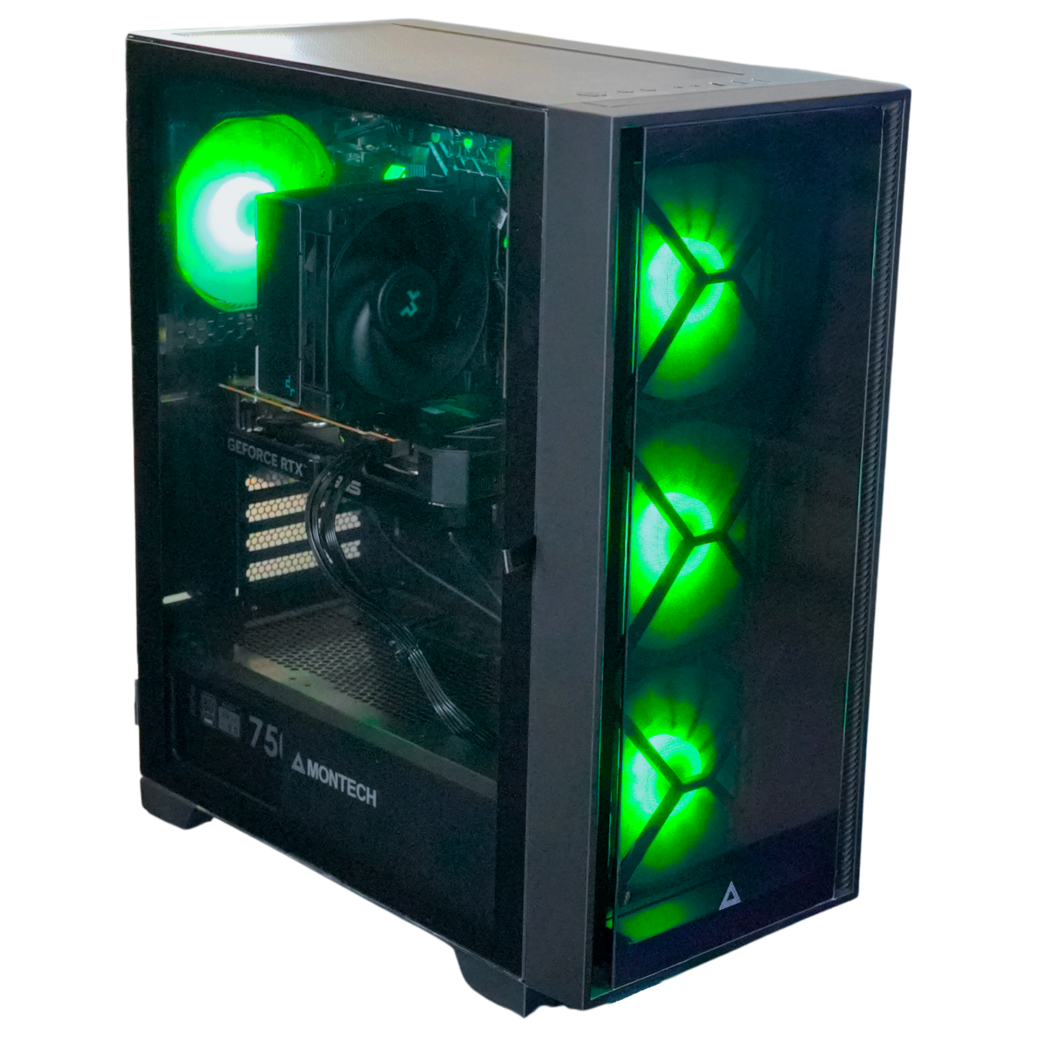 Prime 2 er samlet i det stilfulde Montech Air 1000 kabinet, der sikrer optimal køling til alle komponenter. Kabinettets moderne design kombinerer funktionalitet og æstetik.