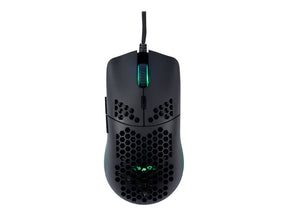 GM800 er ikke kun en fryd for øjet med sin jet black finish, men også for spiloplevelsen med sin tilpasselige RGB-bagbelysning, der giver dig mulighed for at tilpasse dit setup med et spektrum af farver. Musens fem programmerbare knapper giver yderligere personalisering og effektivitet, hvilket gør det muligt at udføre komplekse kommandoer med et enkelt klik.