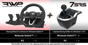 Med HORI Racing Wheel Pro Deluxe og 7-Speed Racing Shifter får du en førsteklasses køreoplevelse til en overkommelig pris. Dette bundle er ideelt til at bringe autentisk racersimulering til din Nintendo Switch eller PC.