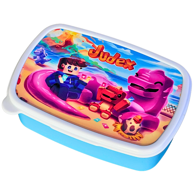 Låget er hvidt med et cool Judex Dino print, mens bunden er i en frisk cyan farve. Den er nem at åbne og lukke, selv for små hænder. Ideel til børn, der elsker dinosaurer og har brug for en madkasse, der både er sjov og funktionel.