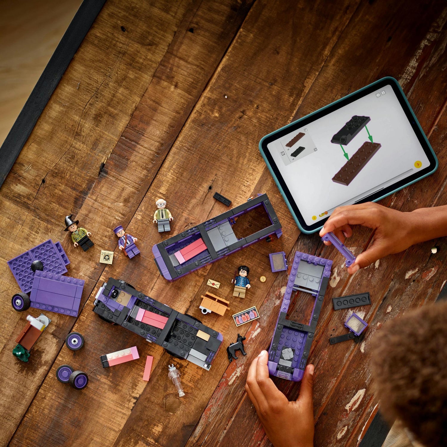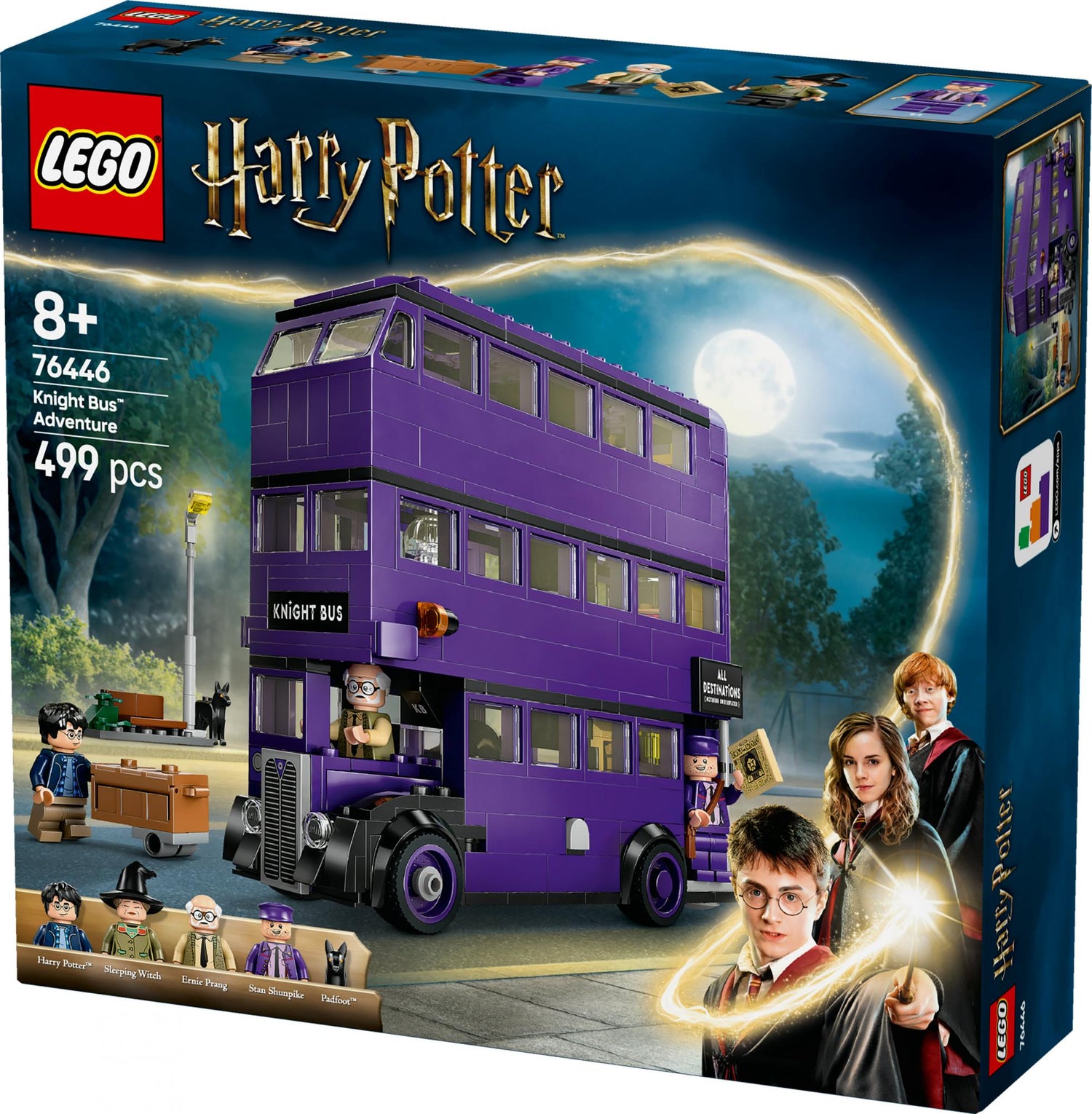 Det magiske byggelegetøj indeholder også 5 LEGO Harry Potter figurer – Harry Potter, Ernie Kabang, Stan Stabejs, en sovende heks samt Køter – til at genskabe genkendelige scener fra Harry Potter og Fangen fra Azkaban™. Andre autentiske detaljer, bl.a. en byggemodel af lygtepælen, hvor Harry ventede (og blev skræmt af Køter!), før Natbussen ankom, Harrys kuffert og et element af avisen Profettidende med overskriften "Escape from Azkaban" bidrager til de kreative muligheder for rolleleg.