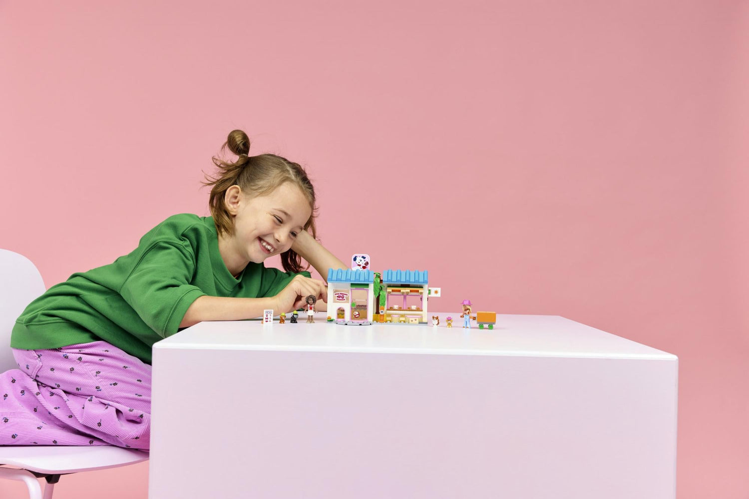 LEGO Friends sættet 42677 kombinerer byggeri med fortælling og giver mulighed for at udforske relationen mellem mennesker og kæledyr gennem leg. De mange elementer og funktioner gør det muligt at variere scenarierne og skabe nye oplevelser i det lille bageri