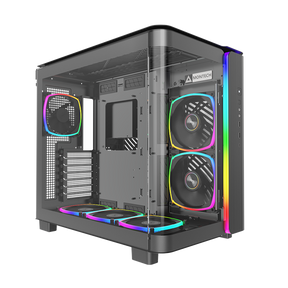 Montech King 95 Pro kombinerer showstopper-æstetik med pro-level funktionalitet i et miditower kabinet, der får dit hardware til at skinne. Med buet hærdet glas, dobbeltkammer-design og 6 inkluderede ARGB-blæsere med hub er du klar til at skabe det perfekte gaming-setup fra dag ét.