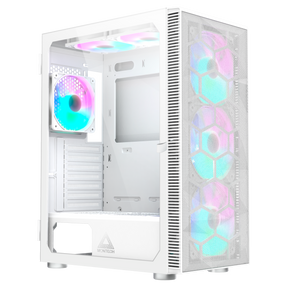 Montech X3 Mesh White - 3x 140mm static RGB fans + 3x 120mm static RGB fans, Side Swivel Tempered Glass
