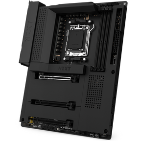 - Stilrent design: Sort ATX-format (305 mm x 204 mm) med integreret metalcover og kølefinner til PCIe Gen 5 NVMe slot matcher andre NZXT-komponenter perfekt