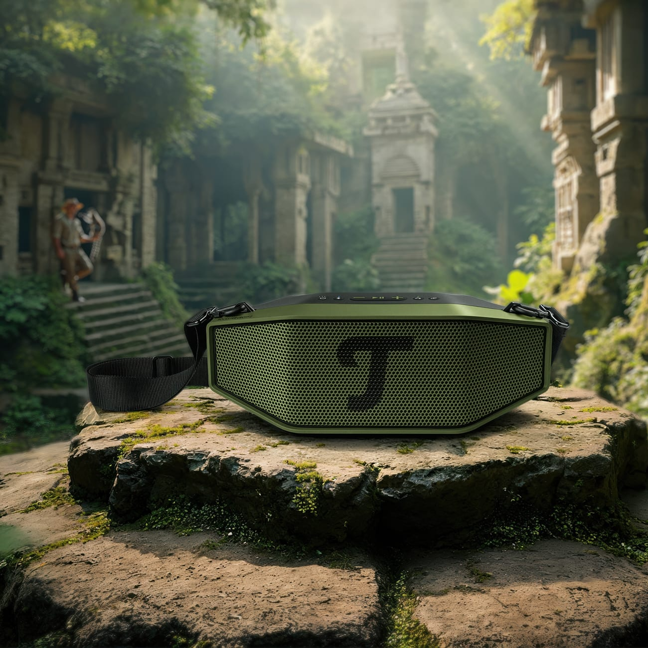 Med op til 38 timers batteritid og indbygget powerbank er den altid klar til at holde festen kørende. Den har USB-C lydkort, Google Fast Pair og mulighed for tilslutning via AUX.