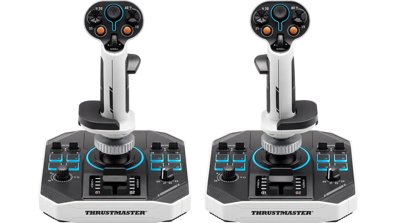 Thrustmaster Sol-R 2 HOSAS Space Sim Duo. Enhedstype: Flightstick, Understøttede gaming platforme: PC, Gaming kontrol teknologi: Analog/digital. Forbindelsesteknologi: Ledningsført, Enhedsgrænseflade: USB, USB-stik type: USB Type-C. Produktfarve: Sort, Hvid. Understøttede Windows-operativsystemer: Windows 10, Windows 10 Education, Windows 10 Education x64, Windows 10 Enterprise, Windows 10.... Bredde: 196 mm, Dybde: 196 mm, Højde: 247 mm