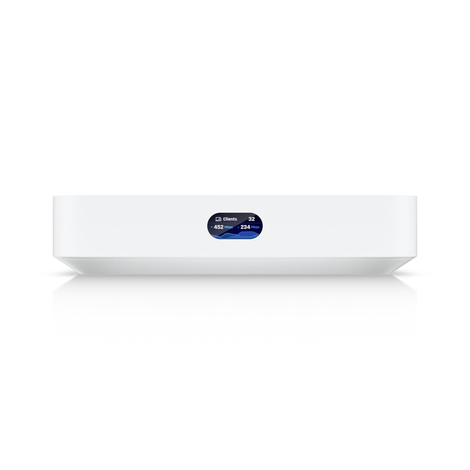 Ubiquiti Cloud Gateway Max. Produktfarve: Hvid, Kabinetmateriale: Polykarbonat (PC), LED-indikatorer: Aktivitet, LAN. Skærmtype: LCM, Processorproducent: ARM, Processorserie: ARM Cortex. Ethernet LAN-datahastigheder: 10,100,1000 Mbit/s, Kabelteknologi: 10/100/1000Base-T(X). WAN-forbindelse: Ethernet (RJ-45). Strømforbrug (maks.): 16,1 W, Indgangsspænding: 100 - 240 V, Udgangsspænding: 5 V